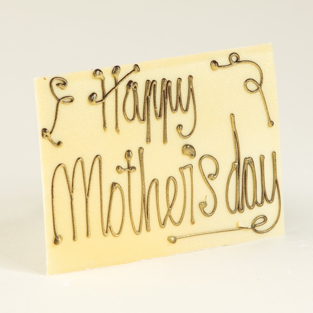 Hand Crafted Happy Mother’s Day – chocolate plaque on white chocolate.