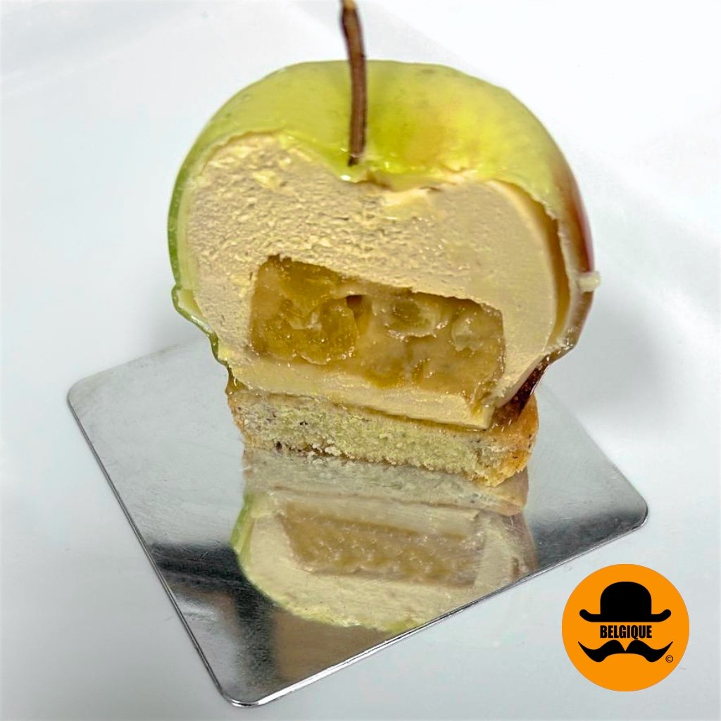 Savour the Pomme de Coeur – a beautifully refined French-inspired dessert created by Belgique’s master pâtisserie chef. Crisp hazelnut breton sablé meets a delicate caramel-chocolate mousse with caramelised apples, all enveloped in a glossy white-chocolate and apple glaze. A true heart of elegance, sweetness and craftsmanship.