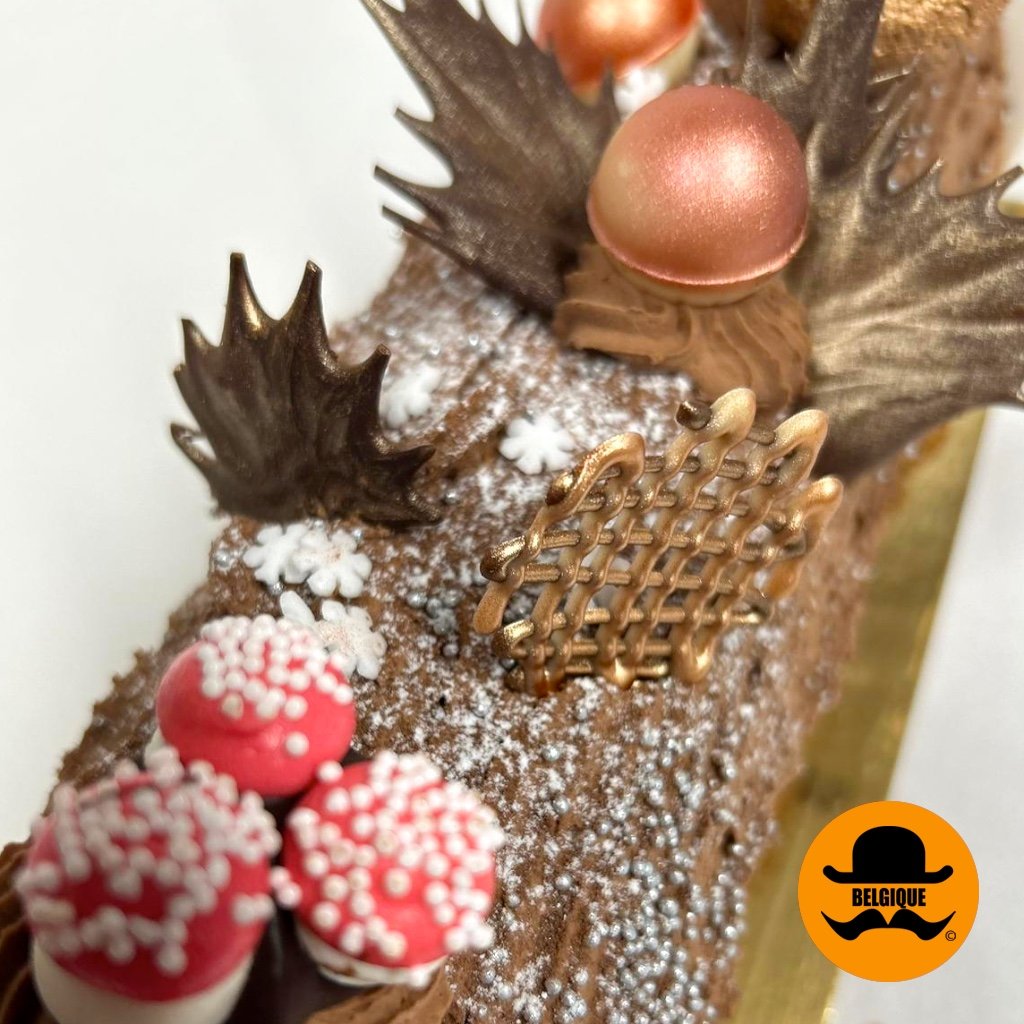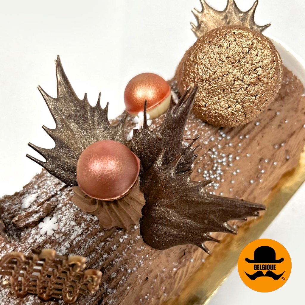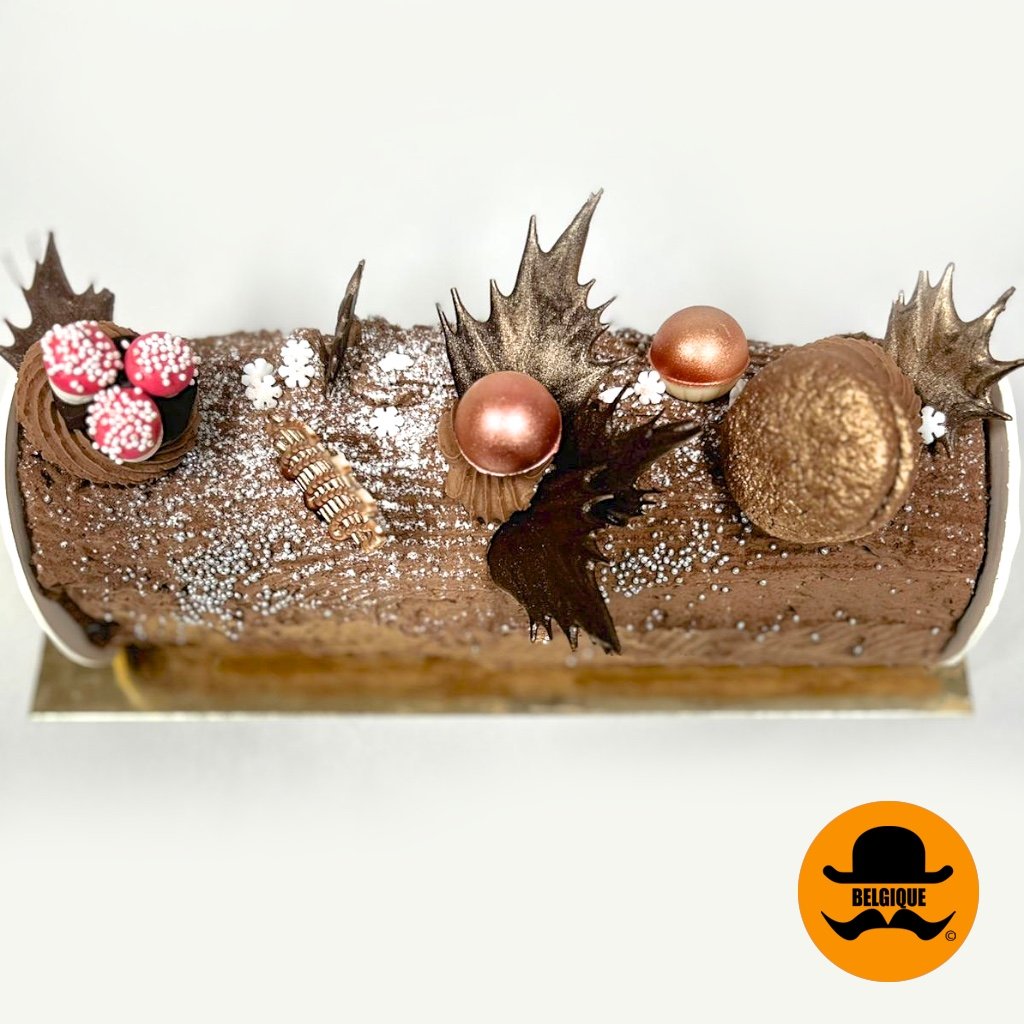 Make this Christmas truly unforgettable with the Bûche Tradition Chocolat 2025, a decadent, lovingly handcrafted festive log from Belgique Patisserie. This seasonal masterpiece features a moist chocolate sponge soaked in rich cocoa syrup, layered with indulgent dark chocolate cream, and finished with a velvety, smooth chocolate topping. Each log is adorned with handcrafted decorations, capturing the timeless charm of an artisanal, rustic Christmas dessert. Whether shared around the table or presented as an elegant gift, this classic Yule log is the perfect centrepiece for your holiday celebrations.